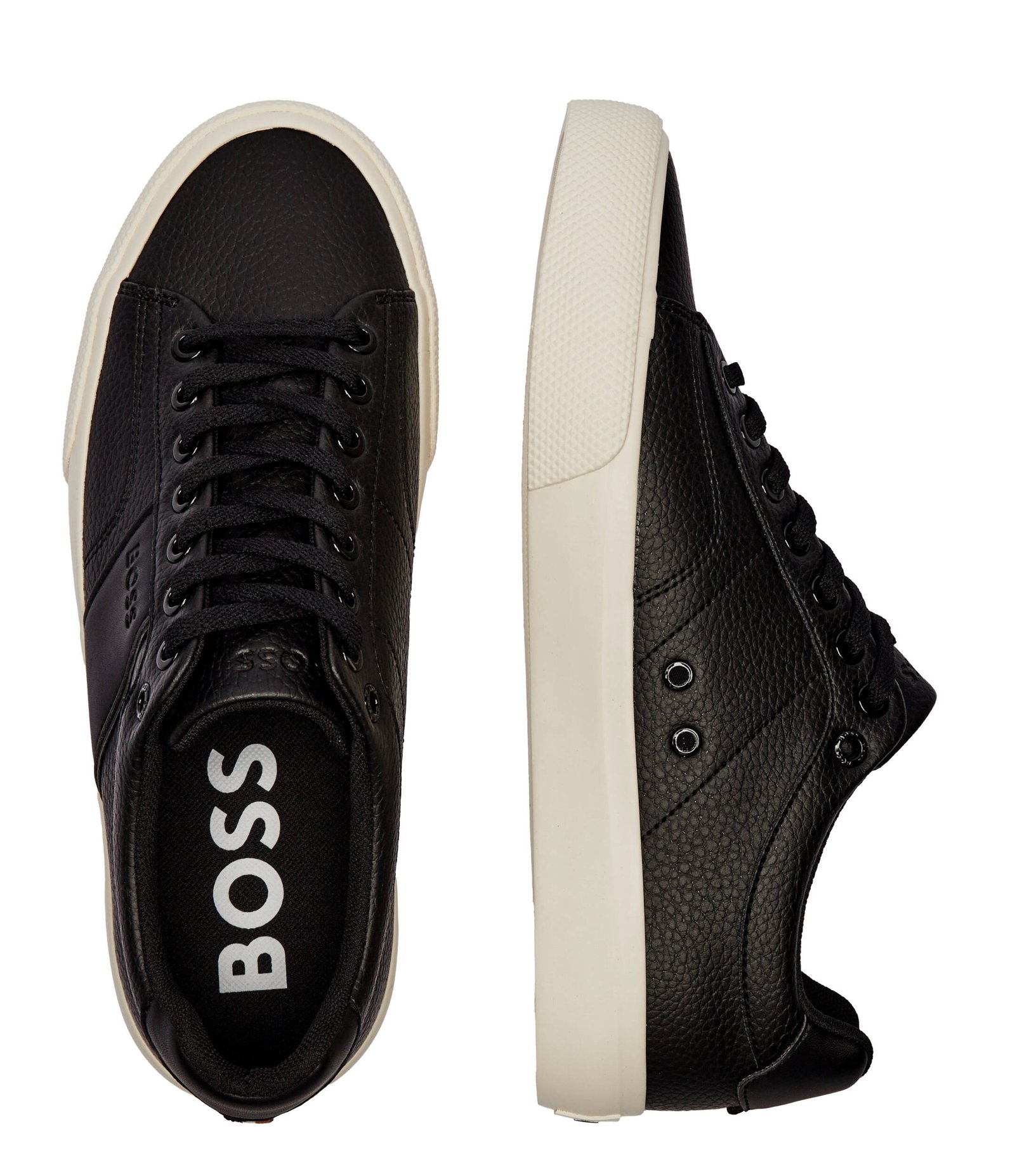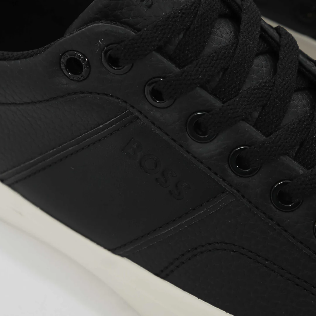 Su silueta limpia y moderna se complementa con detalles de piping en los laterales, branding BOSS discreto y una lengüeta trasera tonal, creando un sneaker versátil que encaja perfectamente en looks casuales o urbanos.