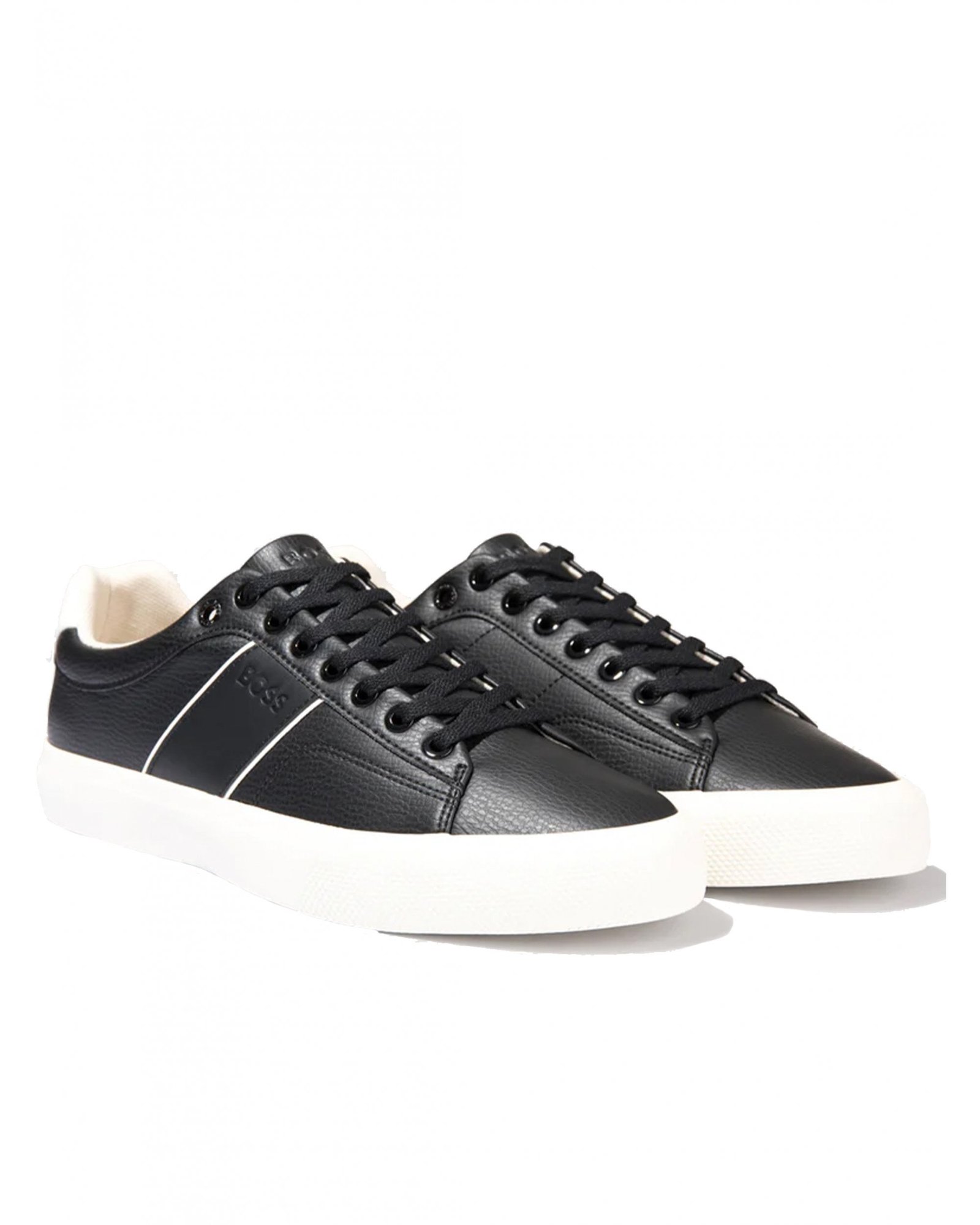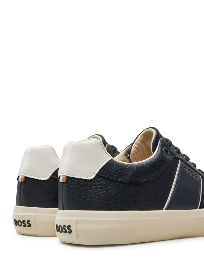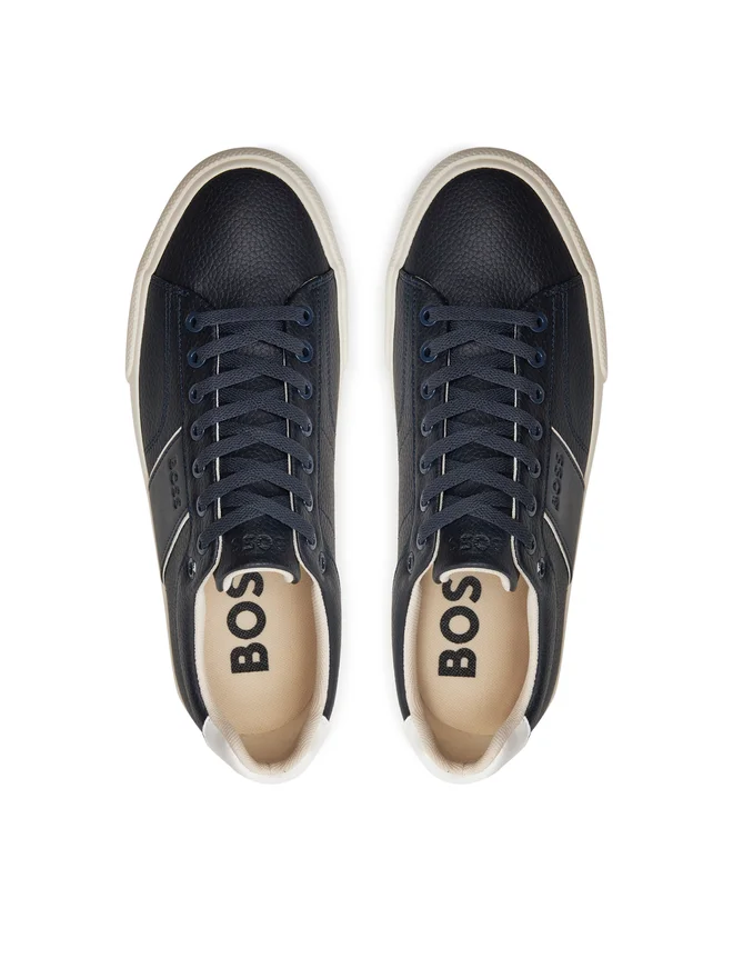 Fabricadas en una mezcla resistente de 60% poliuretano y 40% poliéster, presentan un acabado liso y moderno que eleva cualquier outfit casual. La cupsole discreta aporta estabilidad y confort, mientras que la banda blanca en contraste en el lateral con logo BOSS añade identidad visual sin perder sofisticación.